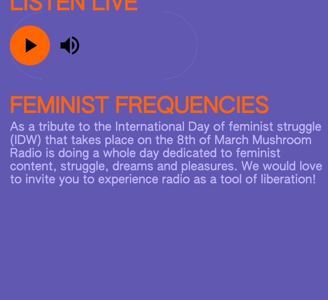 Feminist Frequencies was a tribute to the International Day of feminist struggle that took place on the 8th of March 2022. The whole day Mushroom Radio was dedicated to feminist content, struggle, dreams and pleasures.