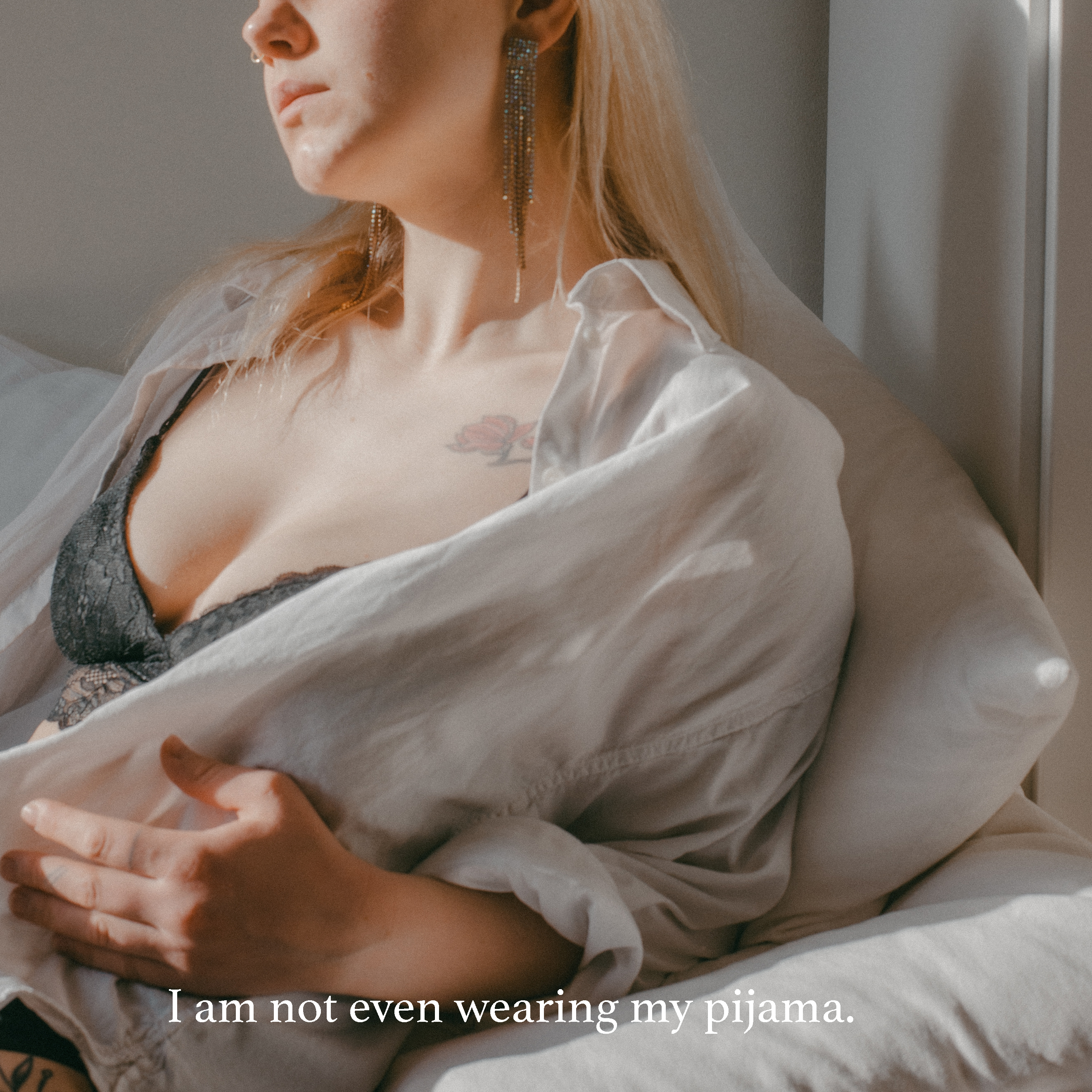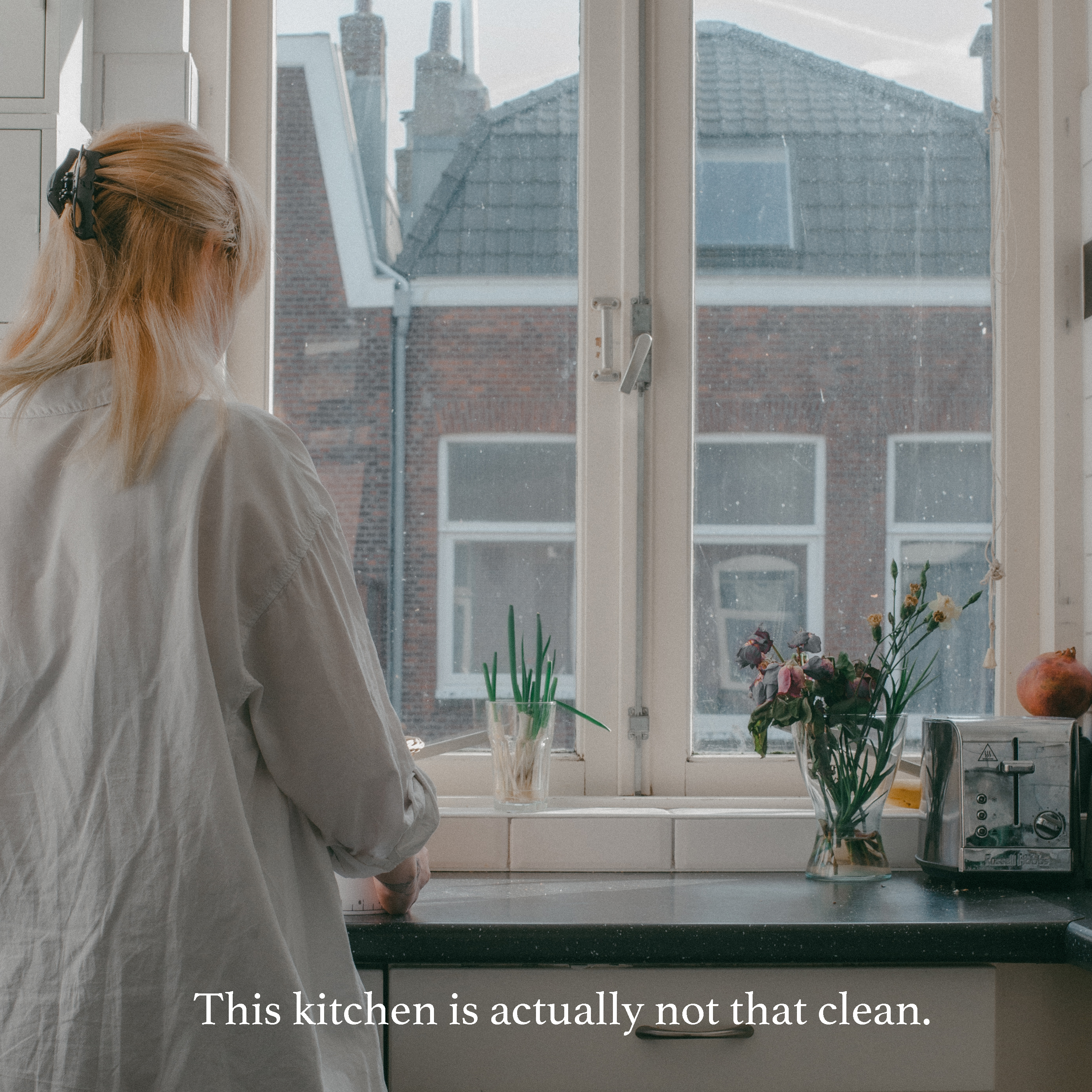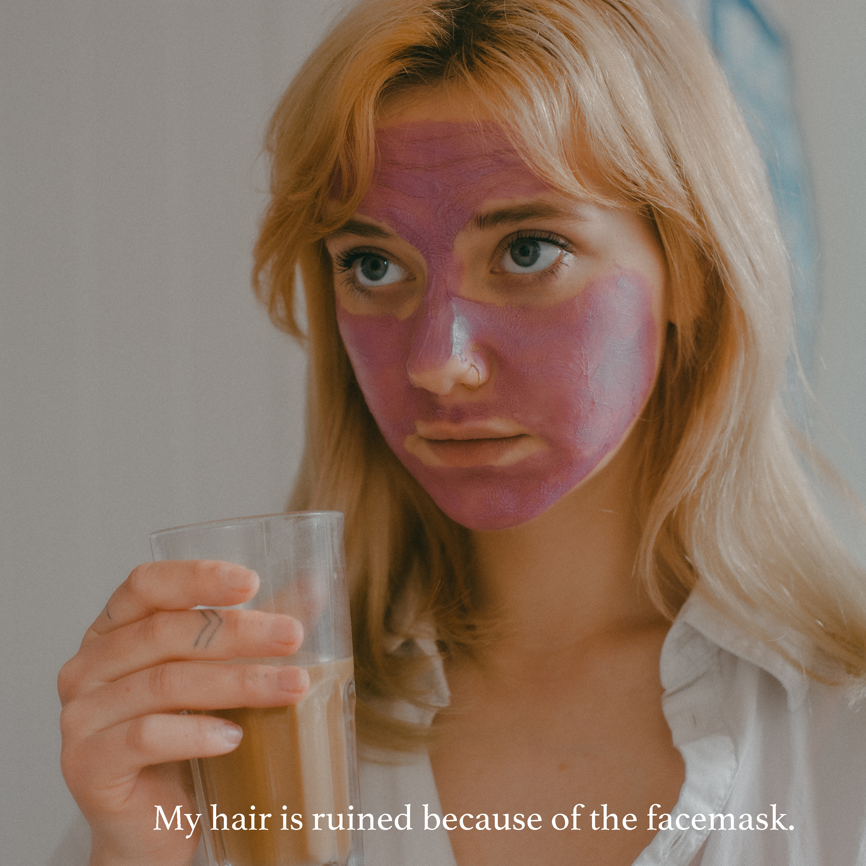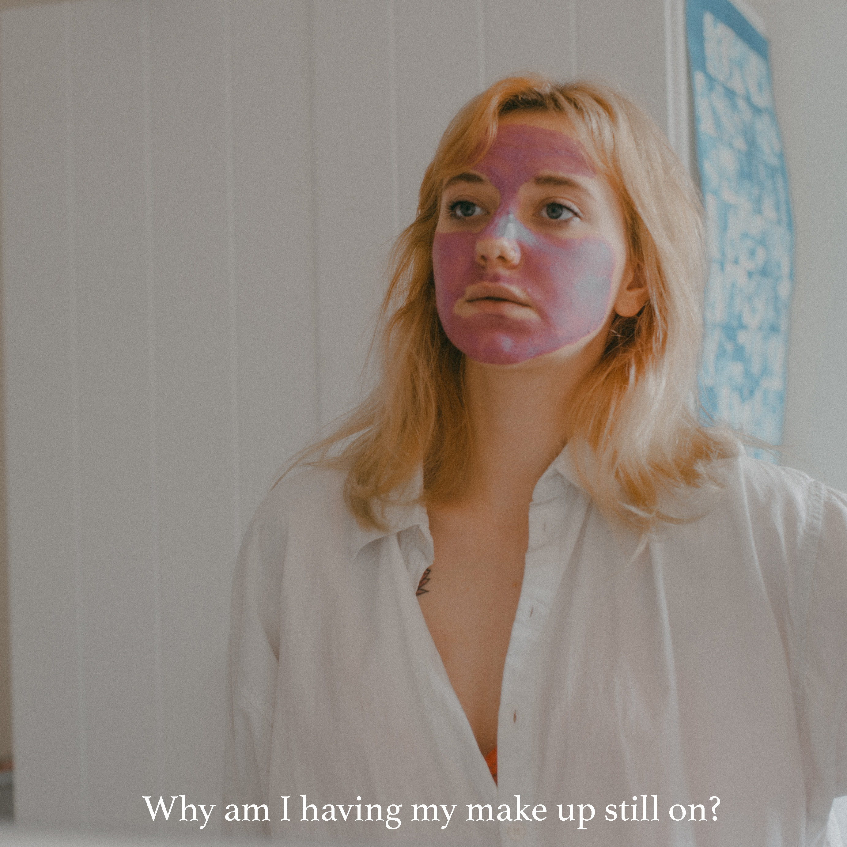 The project is a series of pictures based on my fictional self posing as "That Girl". A trend that became viral through social media indicating an unreal way of keeping up ones life. It may seem harmless, however it hypes up a toxic productivity phenomenon and there’s generally only one type of person represented in the trend: a slim, conventionally attractive, usually wealthy, White woman. I wanted to depict the actual reality behind the pictures by putting myself into character of 'that girl'. I have decided to use text to criticize the idea in an ironic way.